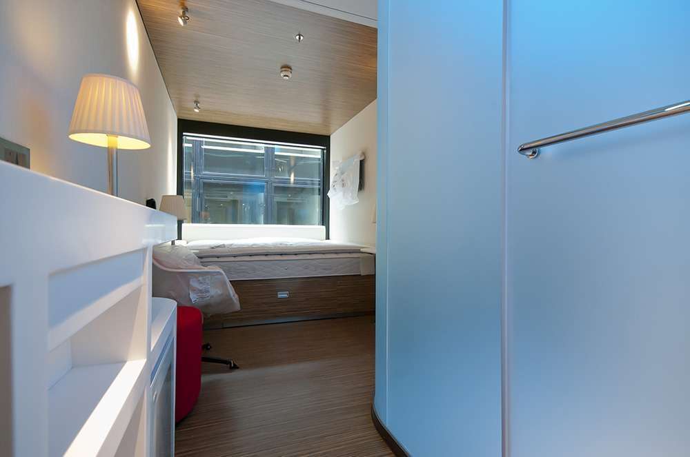 The building was created using a unique modular structure where the bedrooms were built off-site with all of the wiring and services pre-installed.