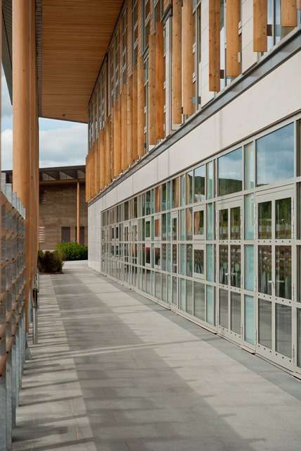 Also housed on the site there is a flexible indoor Sports building with a multi-use sports-hall that incorporates spectator seating and features a mezzanine steel walkway where staff can overlook sport in progress.